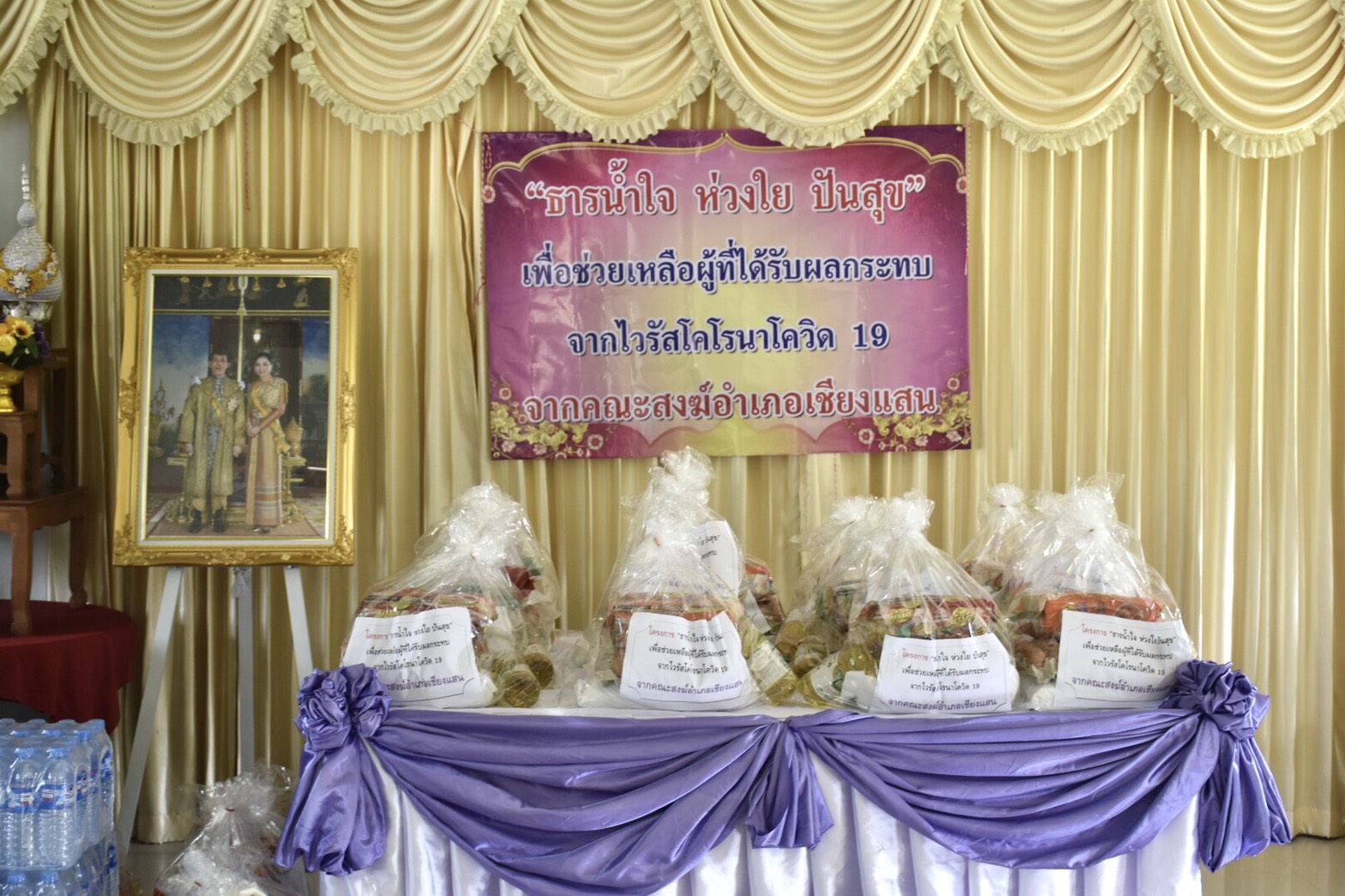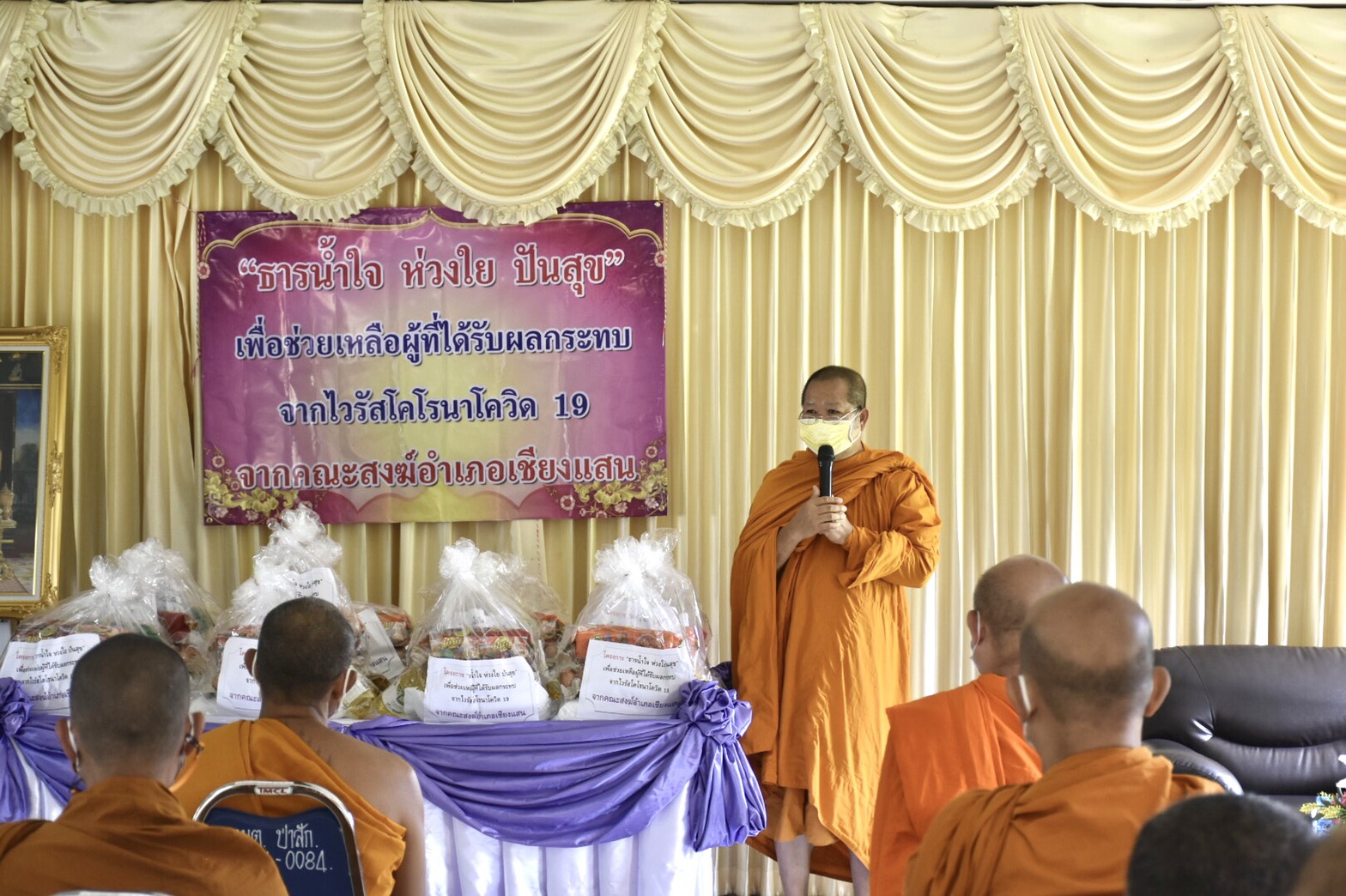 รับมอบถุงยังชีพ “ธารน้ำใจ ห่วงใย ปันสุข” เพื่อช่วยเหลือผู้ที่ได้รับผลกระทบ จากไวรัสโคโรนาโควิด 19 จากเจ้าคณะสงฆ์อำเภอเชียงแสน