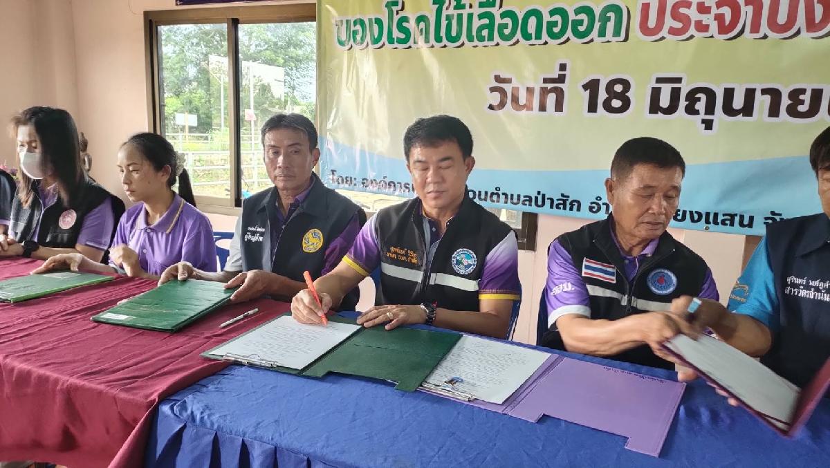 ????????????????และร่วมทำข้อตกลงร่วมมือ(MOU) ในการรณรงค์โรคไข้เลือกออก ฯ ระหว่าง อบต.ป่าสัก,รพ.สต.ตำบลป่าสัก,รพ.สต.บ้านแม่คำ,หมู่บ้านในเขตพื้นที่ตำบลป่าสักทั้ง 13 หมู่บ้านและประธานอาสาสมัครสาธารสุขประจำหมู่บ้าน