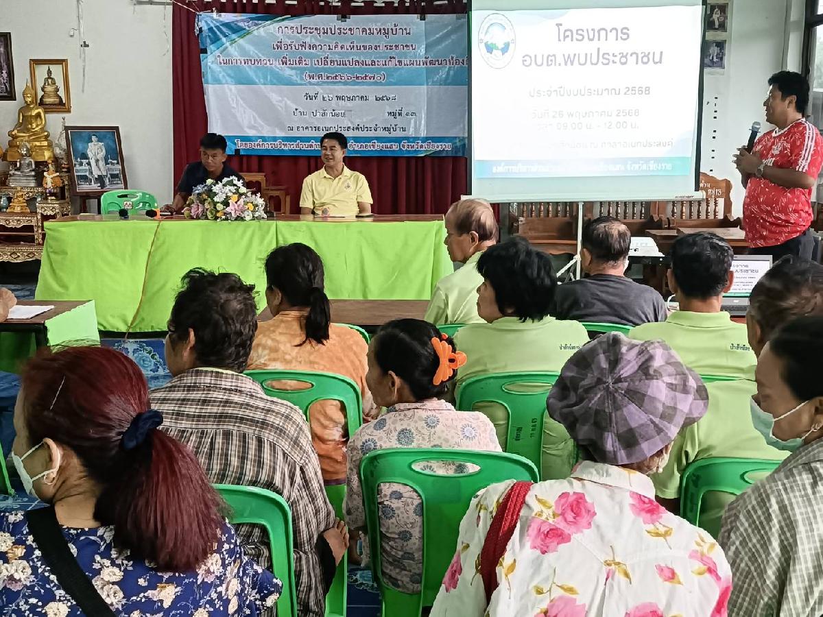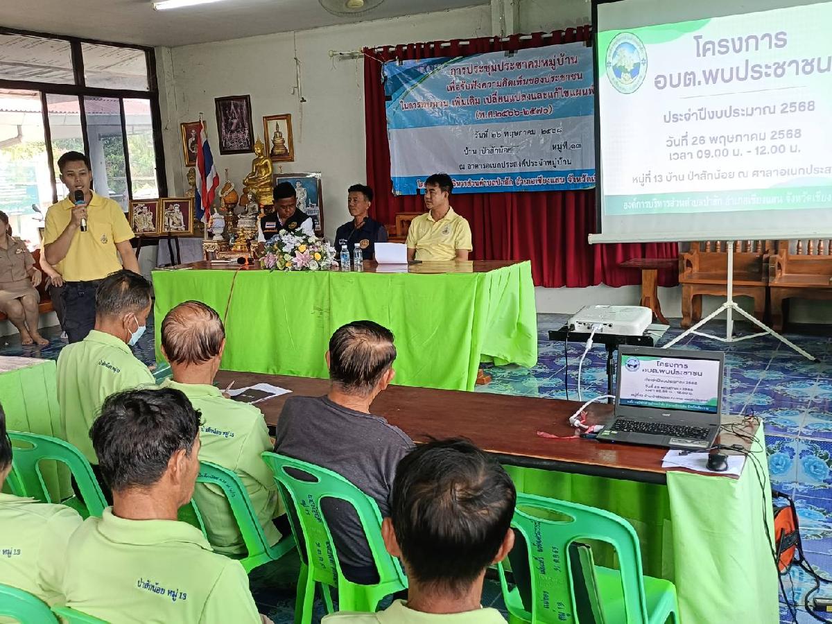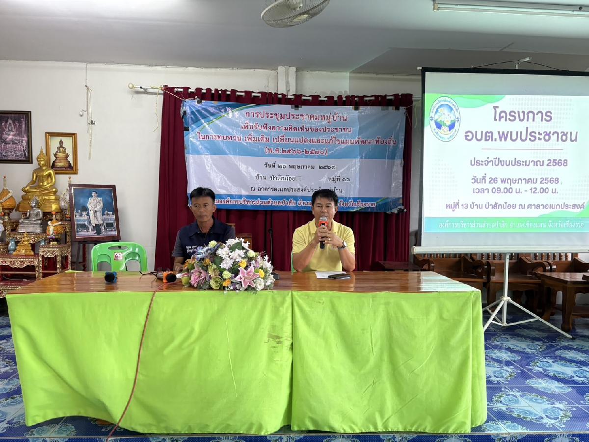 วันจันทร์ที่ 26 พฤษภาคม 2568 องค์การบริหารส่วนตำบลป่าสัก นำโดย นายศุภสัณห์ วิริยะ นายกองค์การบริหารส่วนตำบลป่าสัก พร้อมด้วยเจ้าหน้าที่ อบต.ป่าสัก,นักวิชาการประจำหมู่บ้านป่าสักน้อย หมู่ที่ 13 ตำบลป่าสัก ลงพื้นที่พบปะประชาชนและการจัดเวทีประชาคมระดับหมู่บ้านเพื่อพิจารณาและจัดทำแผนพัฒนาฯท้องถิ่น (พ.ศ.๒๕๖๖ - ๒๕๗๐) เพิ่มเติม เปลี่ยนแปลง ประจำปีงบประมาณ พ.ศ. ๒๕๖๘ และให้ความรู้ให้บริการด้านต่างๆ และรับทราบปัญหาในพื้นที่ชุมชน ฯ???? ภายในงานมีกิจกรรมลุ้นของรางวัลแจกฟรีให้กับประชาชนและผู้เข้าร่วมประชุมในครั้งนี้ด้วย ณ ศาลาประชาคมบ้านป่าสักน้อย หมู่ที่ 13 ต.ป่าสัก อ.เชียงแสน จ.เชียงราย