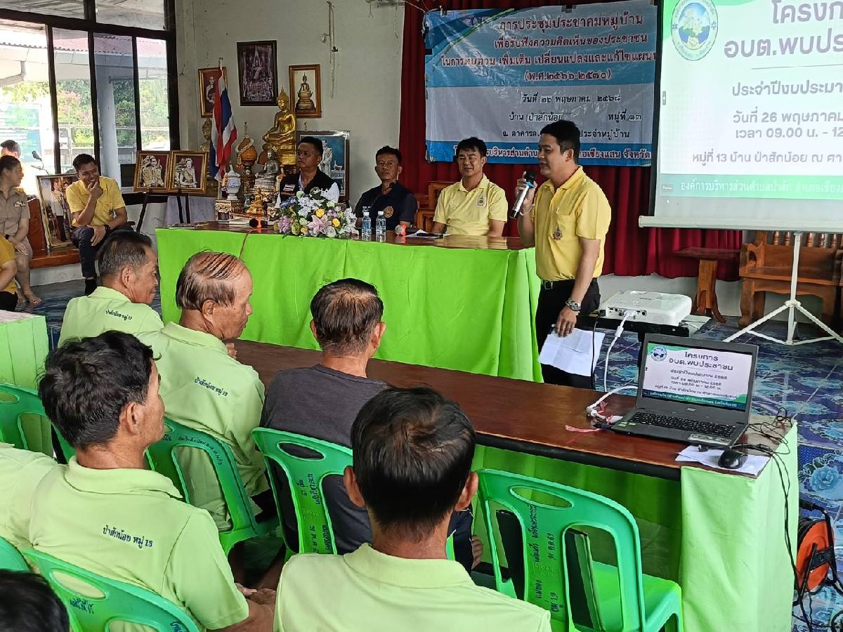 จัดเวทีประชาคมระดับหมู่บ้านเพื่อพิจารณาและจัดทำแผนพัฒนาฯท้องถิ่น (พ.ศ.๒๕๖๖ - ๒๕๗๐) เพิ่มเติม เปลี่ยนแปลง ประจำปีงบประมาณ พ.ศ. ๒๕๖๘ และให้ความรู้ให้บริการด้านต่างๆ และรับทราบปัญหาในพื้นที่ชุมชน ฯ นักวิชาการประจำหมู่บ้านป่าสักน้อย หมู่ที่ 13 ตำบลป่าสัก