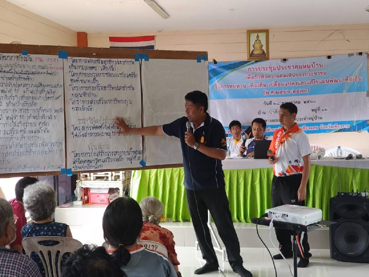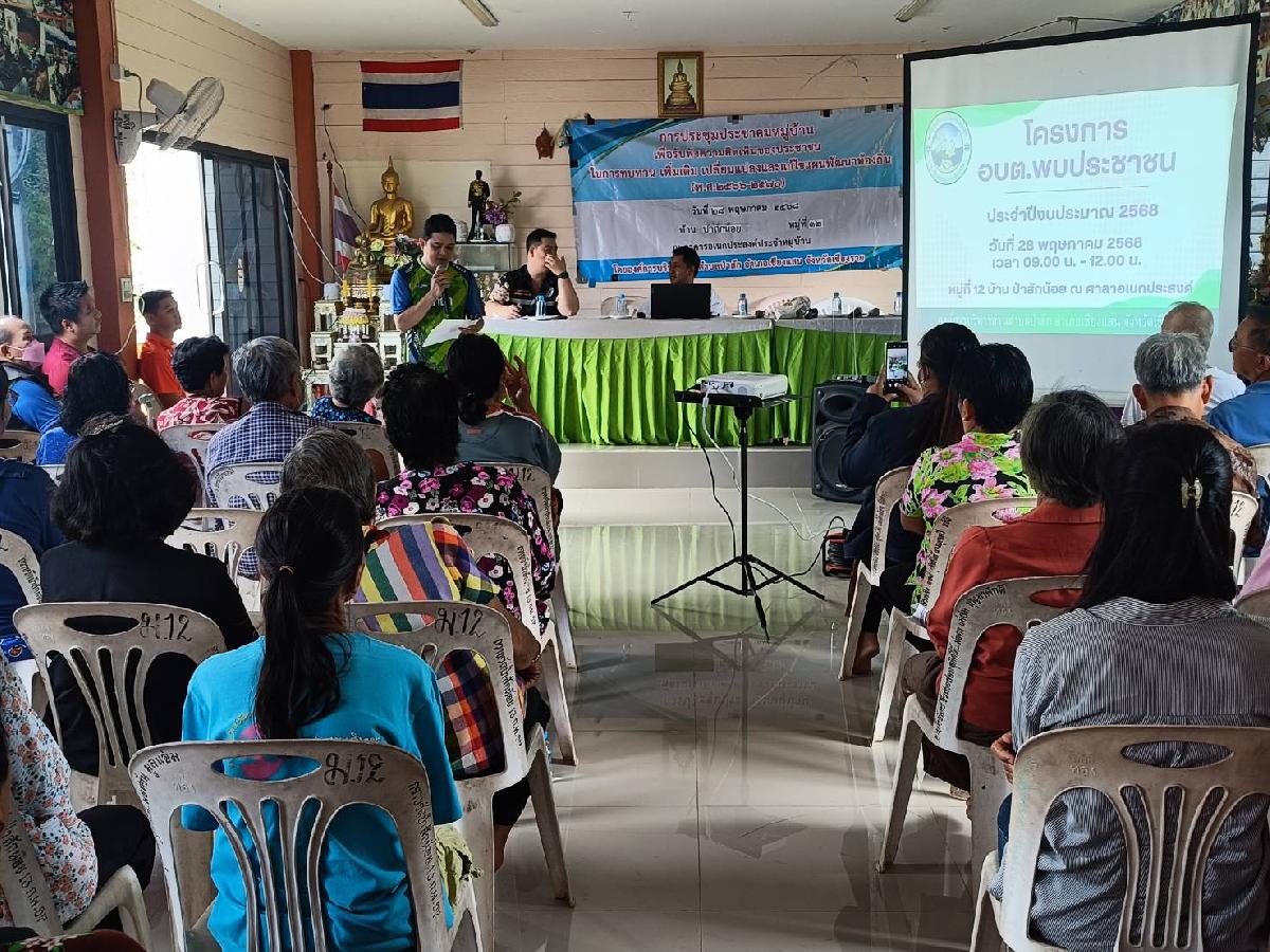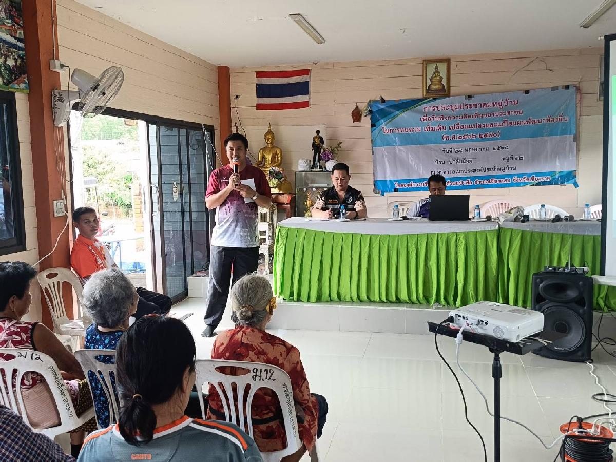 วันพุธที่ 28 พฤษภาคม 2568 "เวลา 09.00 น." องค์การบริหารส่วนตำบลป่าสัก นำโดย นายศุภสัณห์ วิริยะ นายกองค์การบริหารส่วนตำบลป่าสัก พร้อมด้วยเจ้าหน้าที่ อบต.ป่าสัก,นักวิชาการประจำหมู่บ้านบ้านป่าสักน้อย หมู่ที่ 12 #ลงพื้นที่พบปะประชาชนและการจัดเวทีประชาคมระดับหมู่บ้านเพื่อพิจารณาและจัดทำแผนพัฒนาฯท้องถิ่น (พ.ศ.๒๕๖๖ - ๒๕๗๐) เพิ่มเติม เปลี่ยนแปลง ประจำปีงบประมาณ พ.ศ. ๒๕๖๘ และให้ความรู้ให้บริการด้านต่างๆ และรับทราบปัญหาในพื้นที่ชุมชน ฯ ภายในงานมีกิจกรรมลุ้นของรางวัลแจกฟรีให้กับประชาชนที่เข้าร่วมประชุมในครั้งนี้อีกด้วย ณ ศาลาอเนกประสงค์หมู่บ้าน หมู่ที่ 12 บ้านป่าสักน้อย ตำบลป่าสัก อำเภอเชียงแสน จังหวัดเชียงราย