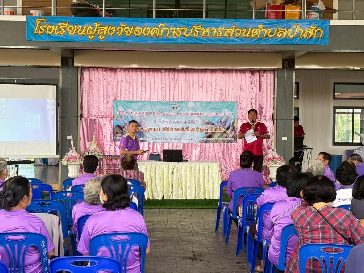 วันพุธที่ 25 มิถุนายน 2568 (เวลา 09.30 น.) องค์การบริหารส่วนตำบลป่าสัก ดำเนินโครงการส่งเสริมและพัฒนาคุณภาพชีวิตผู้สูงอายุตำบลป่าสัก ประจำปีงบประมาณ 2568 กิจกรรมทำช่อตุงล้านนาและการสันทนาการ ร้อง,เล่น,เต้นตามจังหวะเพลงร่วมกับผู้สูงอายุ ฯ วัตถุประสงค์การจัดกิจกรรมเพื่อผู้สูงอายุได้แลกเปลี่ยนเรียนรู้กับเพื่อนวัยและนำความรู้มาประยุกต์ใช้ในชีวิตประจำวัน และสามารถสร้างบทบาทการมีส่วนร่วมของผู้สูงอายุ ด้านสุขภาพการดูแลสุขภาพกายและสุขภาพจิตให้ดีขึ้น ฯ ณ อาคารศูนย์การประชุมประจำตำบลป่าสัก องค์การบริหารส่วนตำบลป่าสัก อำเภอเชียงแสน จังหวัดเชียงราย