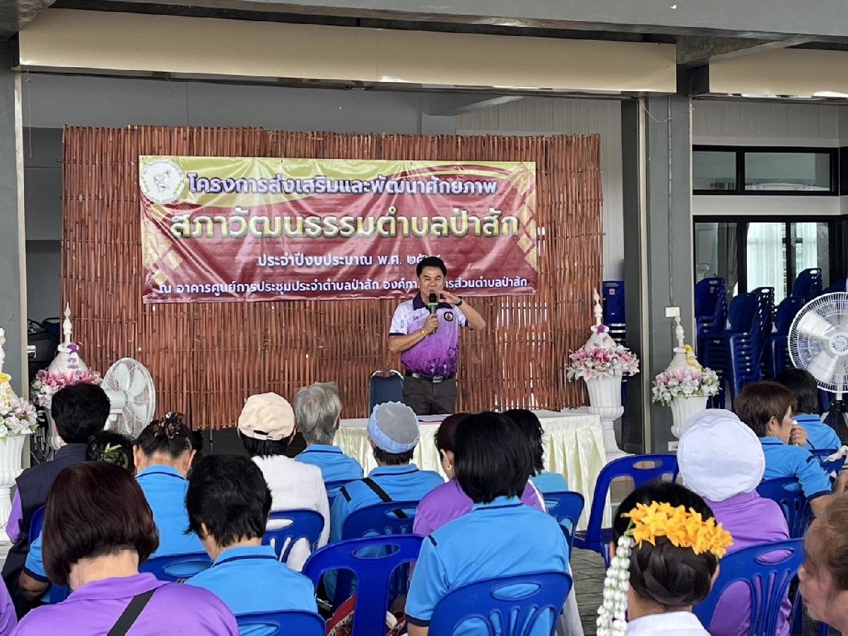 วันพุธที่ 17 กันยายน 2568 องค์การบริหารส่วนตำบลป่าสัก กองการศึกษา อบต.ป่าสัก ได้ดำเนินกิจกรรมโครงการส่งเสริมและพัฒนาศักยภาพสภาวัฒนธรรมตำบลป่าสัก ประจำปีงบประมาณ พศ.2568 ของกลุ่มสภาวัฒนธรรมตำบลป่าสัก วัตถุประสงค์ดำเนินการขับเคลื่อนภาคประชาชนให้มีส่วนร่วมในการส่งเสริมและรักษามรดกภูมิปัญญาทางวัฒนธรรม ในชุมชนตำบลป่าสักให้คงอยู่ต่อไป ณ อาคารศูนย์การประชุมตำบลป่าสัก องค์การบริหารส่วนตำบลป่าสัก อ.เชียงแสน จ.เชียงราย
