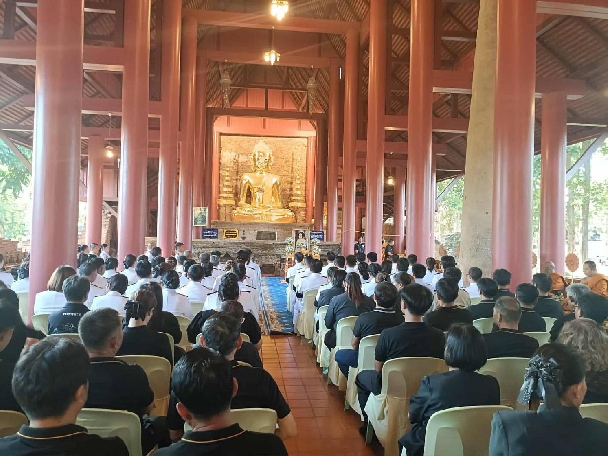องค์การบริหารส่วนตำบลป่าสัก อ.เชียงแสน จ.เชียงราย วันนี้ วันอาทิตย์ที่ 26 ตุลาคม 2568 (เวลา ๑๓.๐๐ น.) นำโดย คณะผู้บริหาร ข้าราชการ คณะครู องค์การบริหารส่วนตำบลป่าสัก ร่วมพิธีถวายน้ำสรงพระบรมศพ เบื้องหน้าพระฉายาลักษณ์ สมเด็จพระนางเจ้าสิริกิติ์ พระบรมราชินีนาถ พระบรมราชชนนีพันปีหลวง และพิธีบำเพ็ญกุศลสัตตมวาร ๗ วัน อุทิศถวายเป็นพระราชกุศล ณ วัดเจดีย์หลวง อำเภอเชียงแสน จังหวัดเชียงราย โดยมี นายอุดม จันกิติ ปลัดอำเภอ ฯ รักษาราชการแทน นายอำเภอเชียงแสน เป็นประธานในพิธีฯ ผู้ร่วมพิธีประกอบด้วย หัวหน้าส่วนราชการ หัวหน้าหน่วยงานรัฐวิสาหกิจ กิ่งกาชาดอำเภอเชียงแสน ผู้บริหารสถานศึกษา องค์กรปกครองส่วนท้องถิ่น กำนัน ผู้ใหญ่บ้าน ร่วมกิจกรรมในครั้งนี้ เป็นไปด้วยความเรียบร้อย